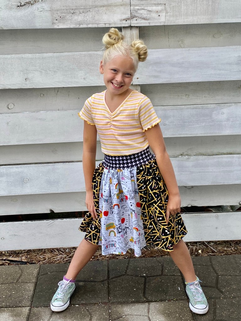 Week 36 Sept 6-12 Sew Something Two Ways for the Kellie skirt pattern test ….sewn by machine and by hand (buttons)