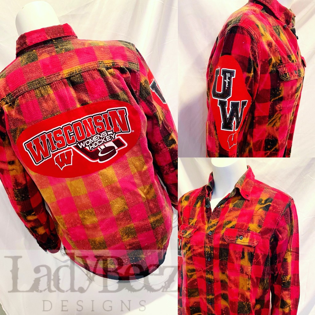 Week 41 Oct 11-17 Try Something New Crazy! I did try something new this week….custom order for a friend…she bleached the flannel and I embellished it with a Tshirt
