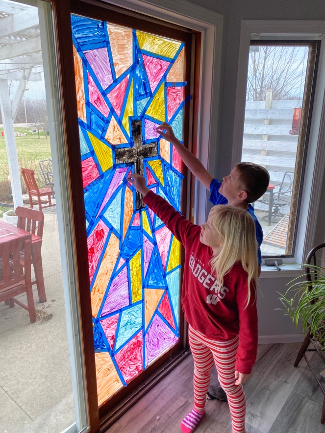 Well, it’s Holy Week…and the idea of having a large cross painted on one of our windows is just too good for me to let go.