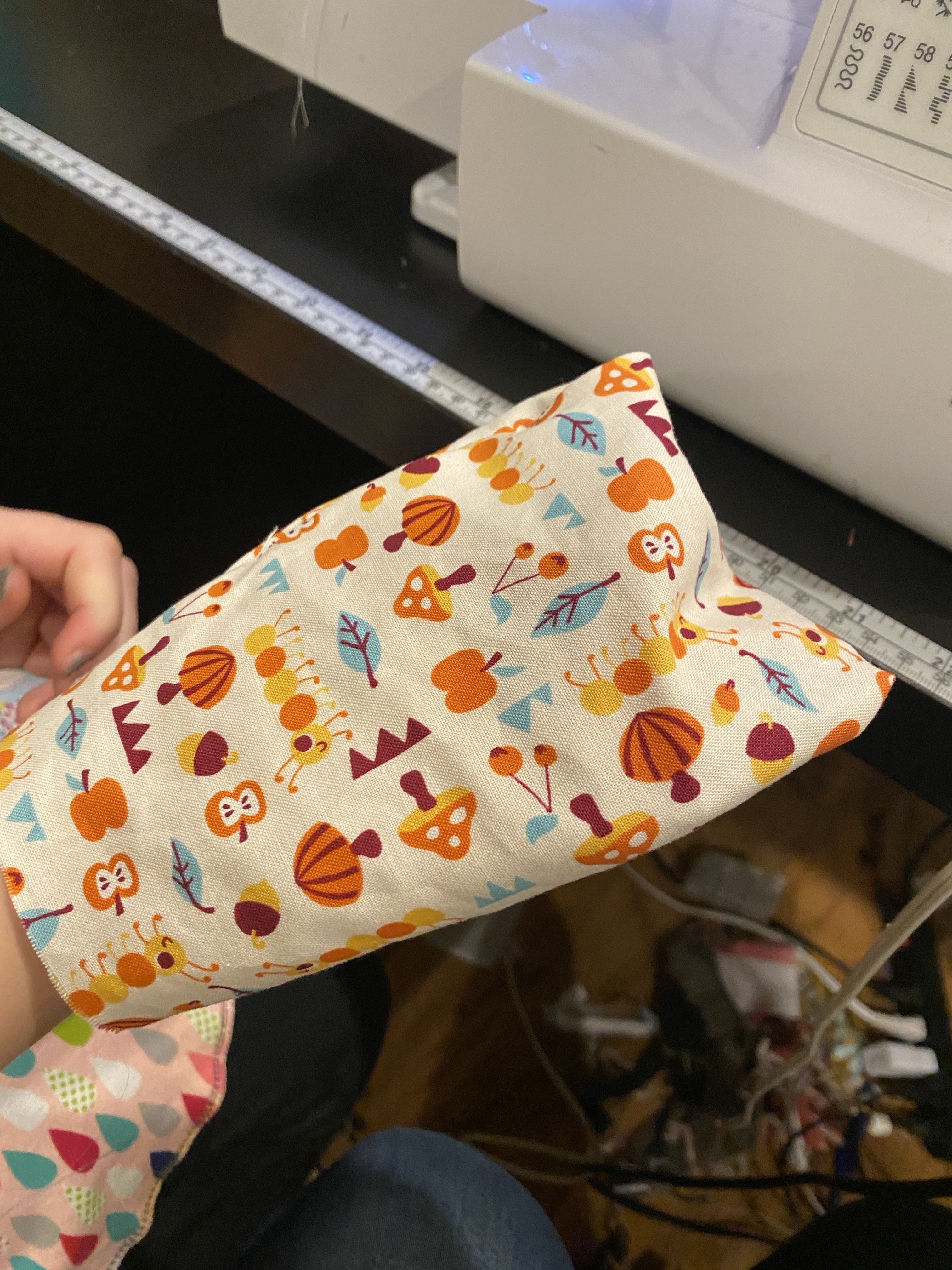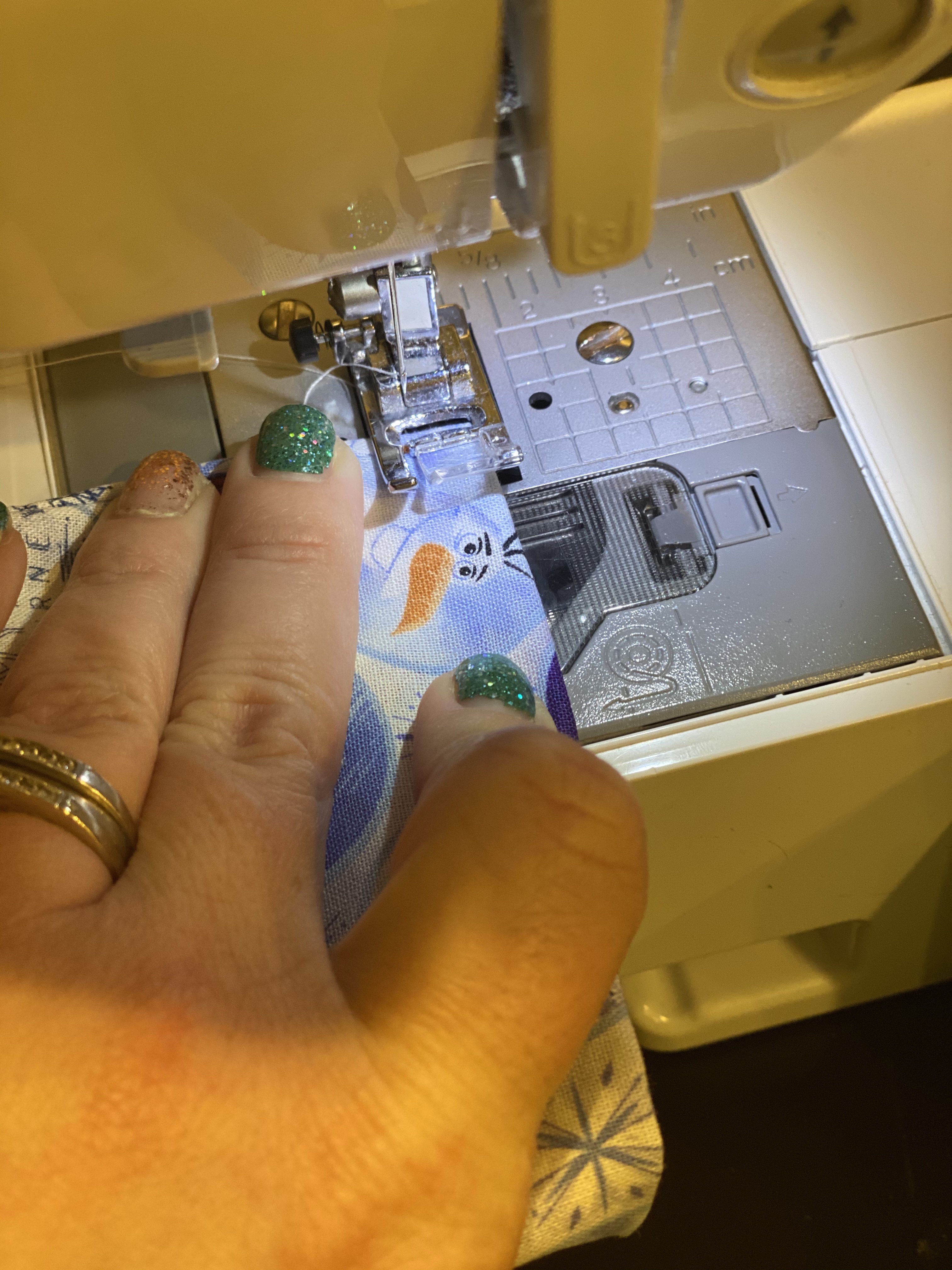 Below I am showing how to fold the fabric: fold over the end about 1/2 inch and then hot dog fold it in half.